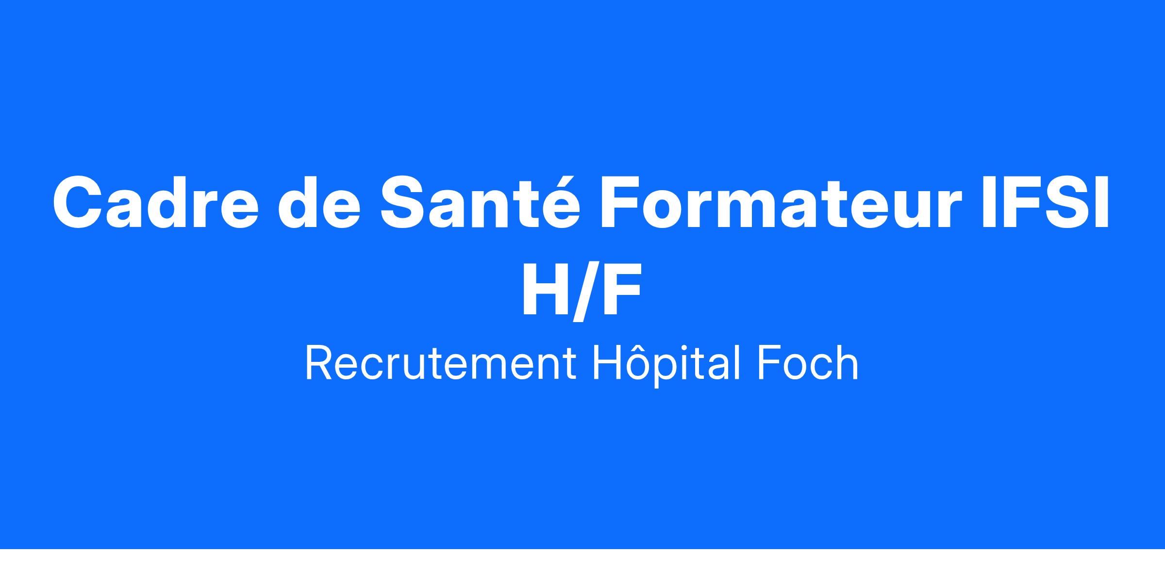 L’IFSI FOCH recherche un cadre de santé formateur H/F pour un poste en CDI, à temps plein.