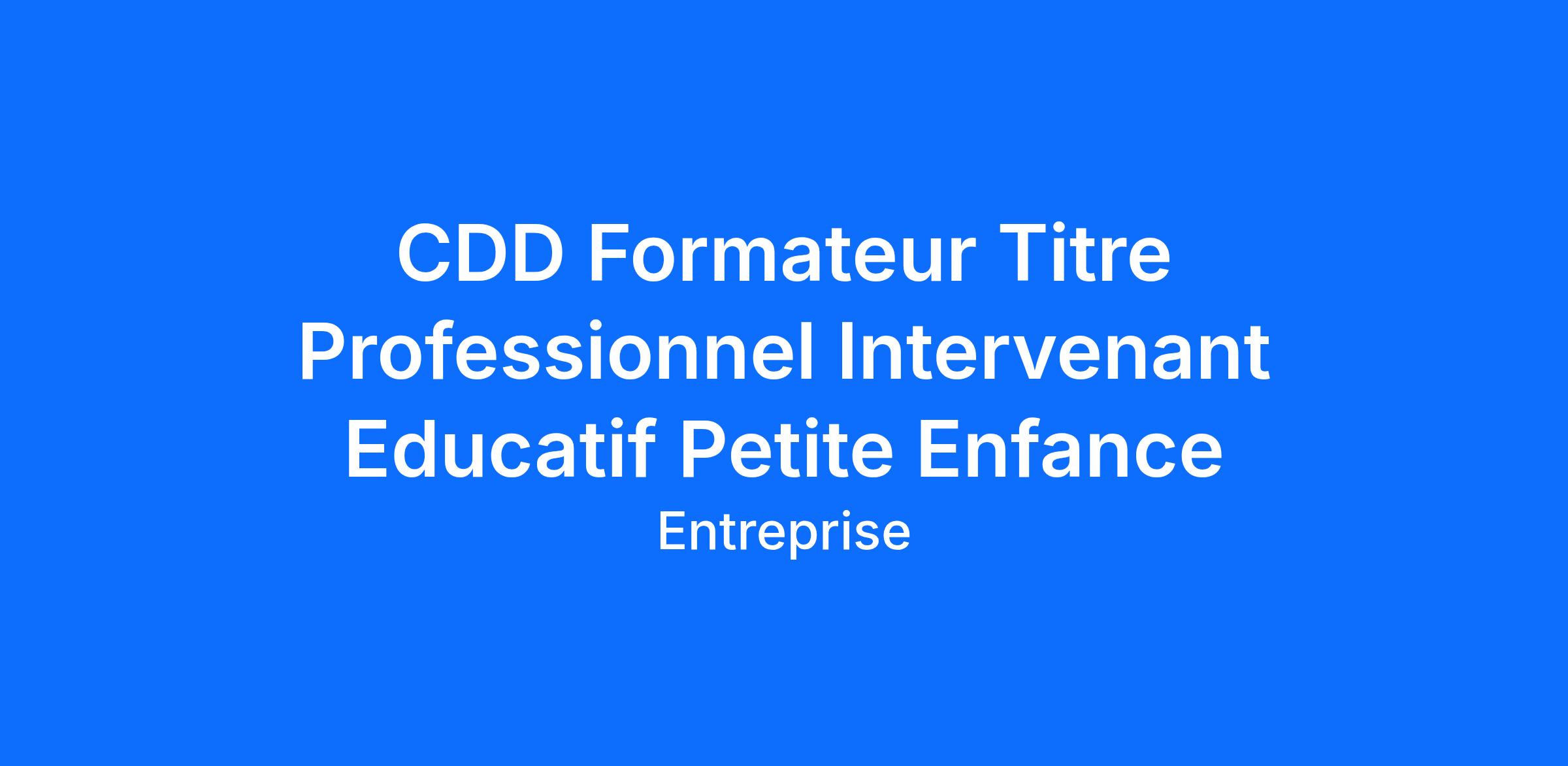 CDD Formateur Titre Professionnel Intervenant Educatif Petite Enfance