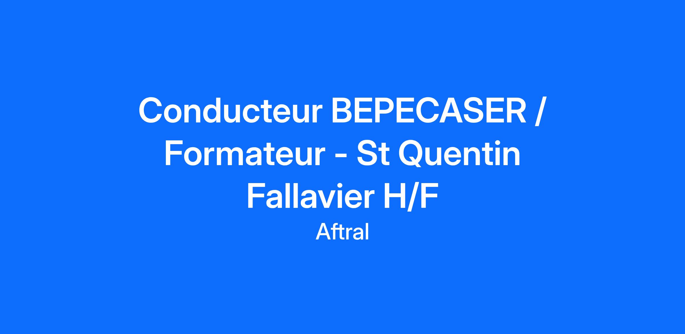 Conducteur BEPECASER / Formateur - St Quentin Fallavier H/F
