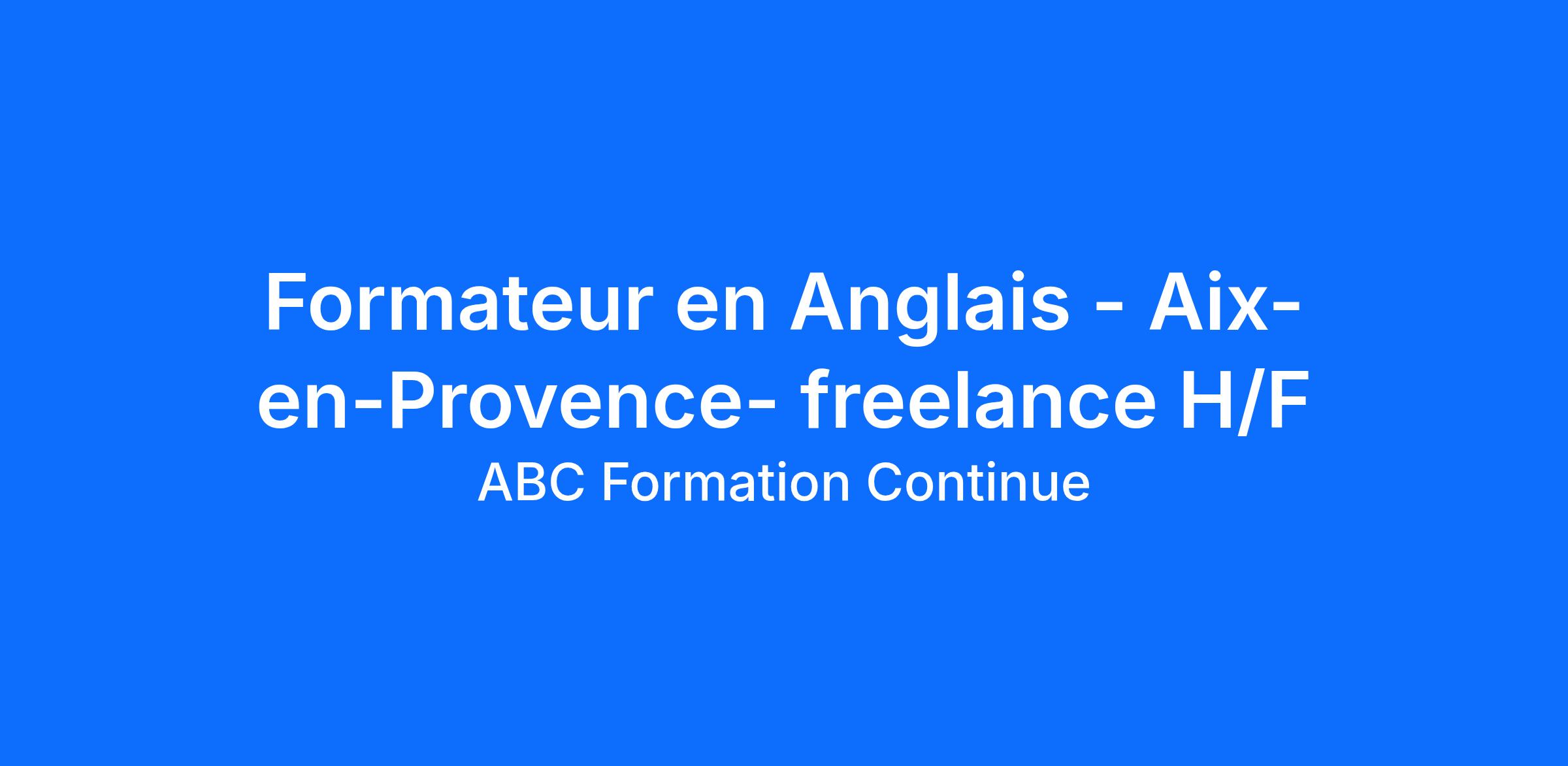 Dans le cadre du développement de notre agence d’Aix-en-Provence, nous recherchons un formateur freelance/indépendant en Anglais (H/F) pédagogue et disposant de ses supports de formation pour animer des formations individuelles en présentiel dans le cadre de missions ponctuelles.
