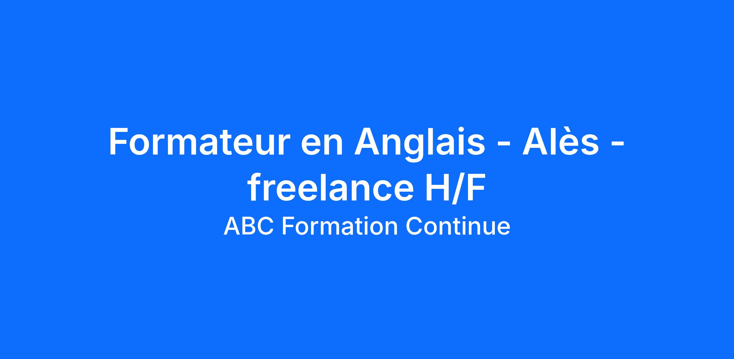 Dans le cadre du développement de notre agence d’Alès, nous recherchons un formateur freelance/indépendant en Anglais (H/F) pédagogue et disposant de ses supports de formation pour animer des formations individuelles en présentiel dans le cadre de missions ponctuelles.