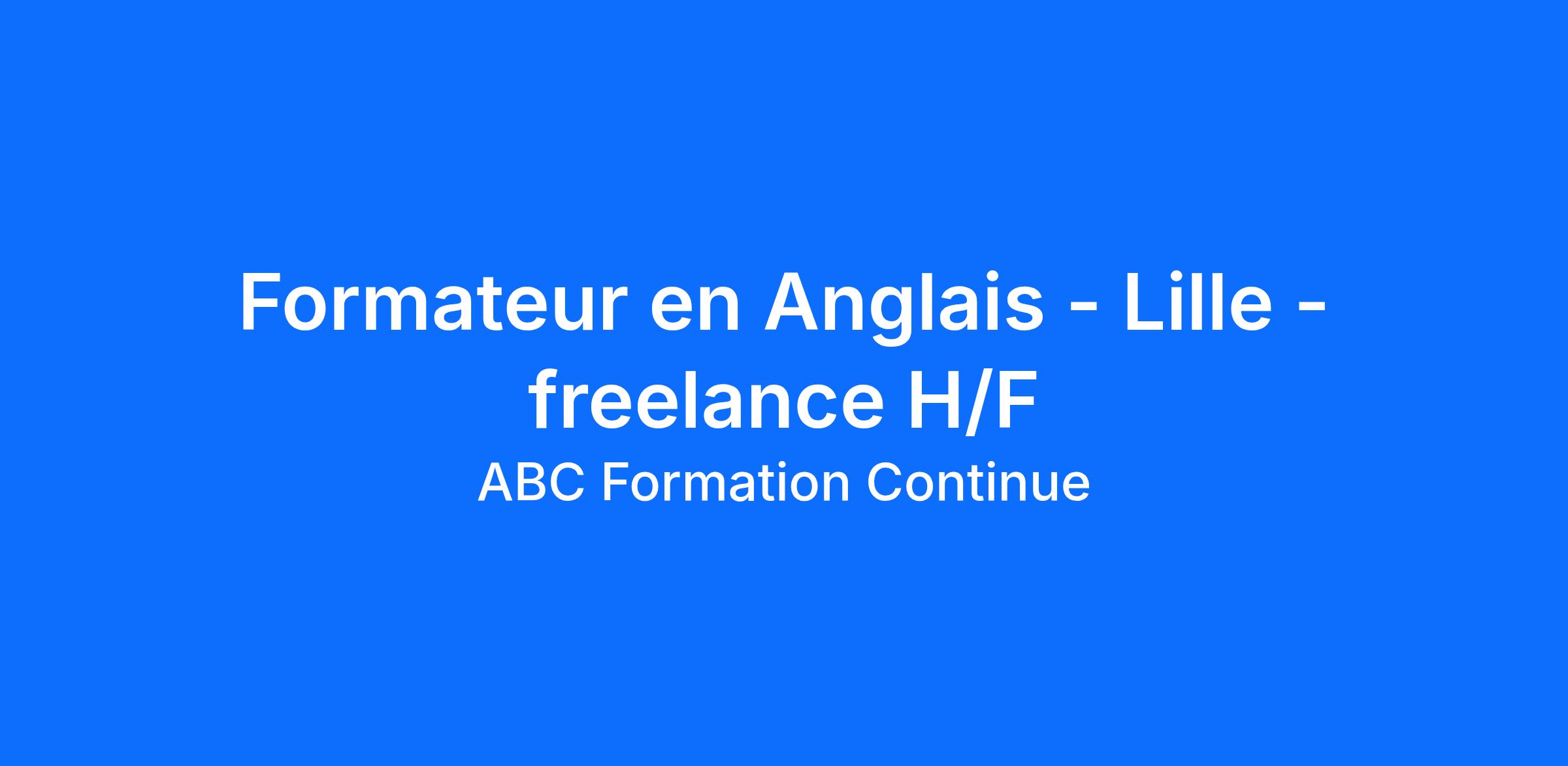 Dans le cadre du développement de notre agence de Lille, nous recherchons un formateur freelance/indépendant en Anglais (H/F) pédagogue et disposant de ses supports de formation pour animer des formations individuelles en présentiel dans le cadre de missions ponctuelles.