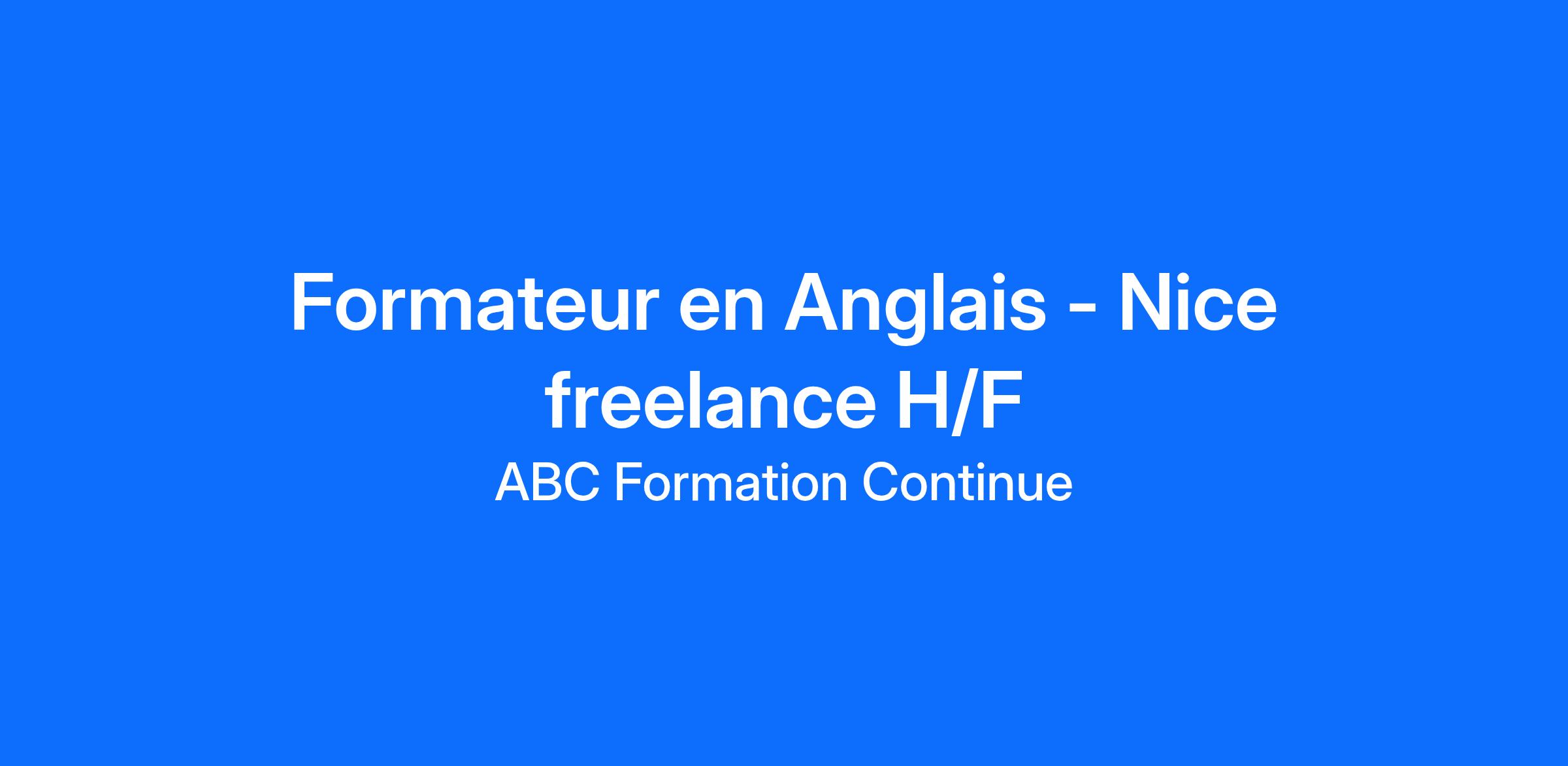 Dans le cadre du développement de notre agence de Nice, nous recherchons un formateur freelance/indépendant en Anglais (H/F) pédagogues et disposant de ses supports de formation pour animer des formations individuelles en présentiel dans le cadre de missions ponctuelles.