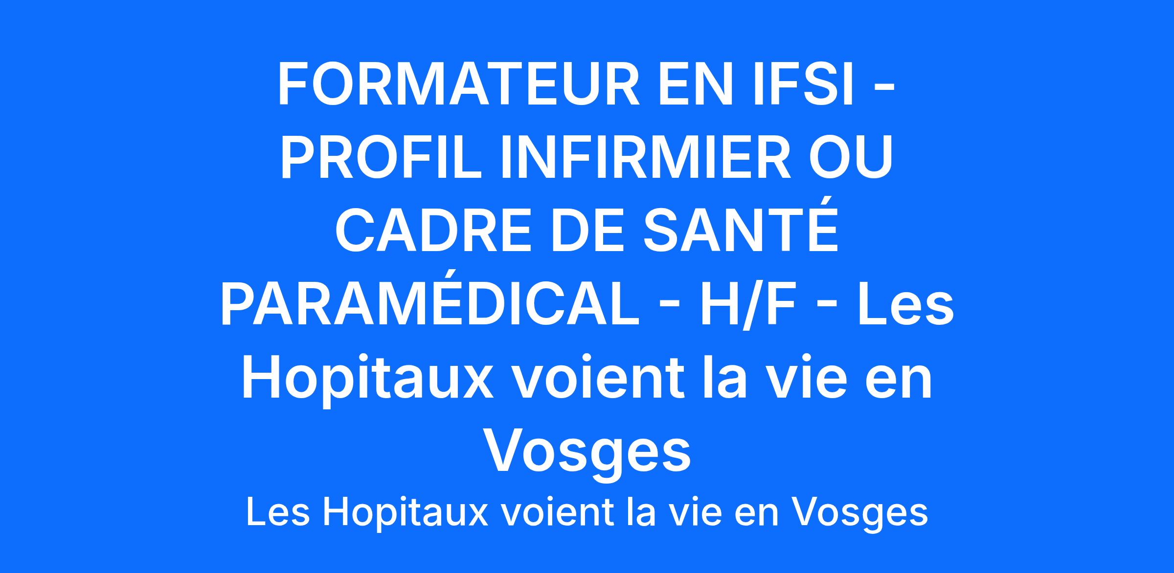 Le centre Hospitalier Béatrix-de-lorraine de Remiremont recherche un Formateur pour son Institut de Formation en Soins Infirmiers (IFSI) à temps plein au sein d'une équipe de 7 formateurs.