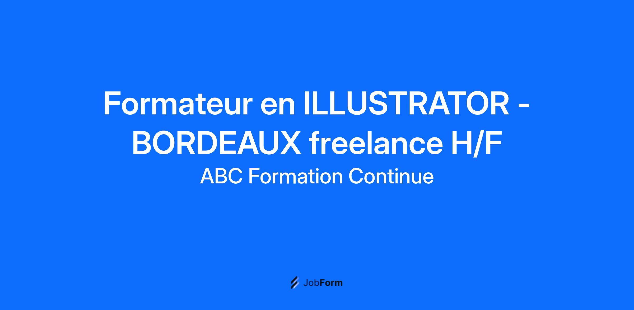 Dans le cadre du développement de notre agence de Bordeaux , nous recherchons un formateur freelance/indépendant en ILLUSTRATOR (H/F) pédagogues et disposant de ses supports de formation pour animer des formations individuelles en présentiel dans le cadre de missions ponctuelles.