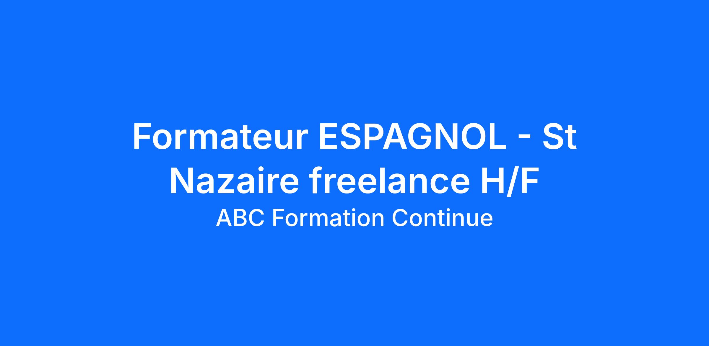 Dans le cadre du développement de notre agence de St Nazaire nous recherchons un formateur freelance/indépendant en ESPAGNOL (H/F) pédagogues et disposant de ses supports de formation pour animer des formations individuelles en présentiel dans le cadre de missions ponctuelles.