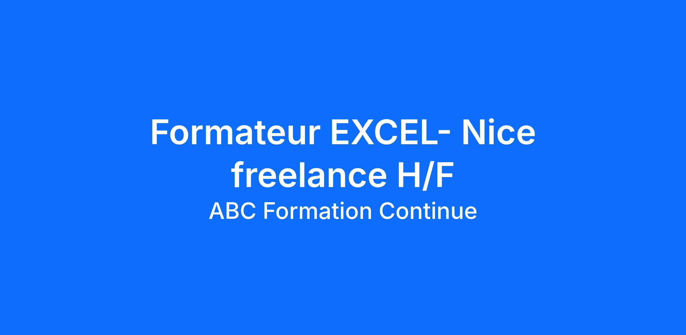 Dans le cadre du développement de notre agence de Nice, nous recherchons un formateur freelance/indépendant en EXCEL (H/F) pédagogue et disposant de ses supports de formation pour animer des formations individuelles en présentiel dans le cadre de missions ponctuelles.