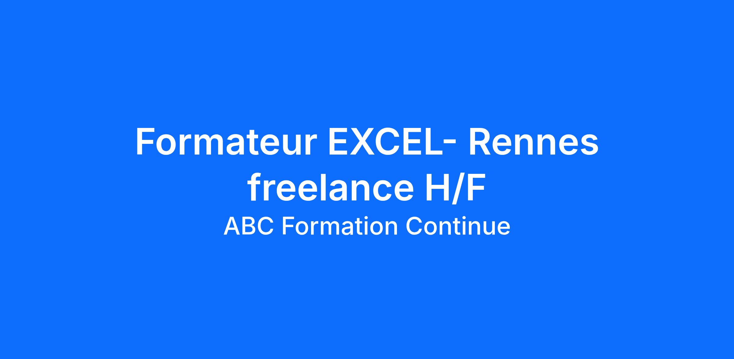 Dans le cadre du développement de notre agence de Rennes, nous recherchons un formateur freelance/indépendant en EXCEL (H/F) pédagogue et disposant de ses supports de formation pour animer des formations individuelles en présentiel dans le cadre de missions ponctuelles.
