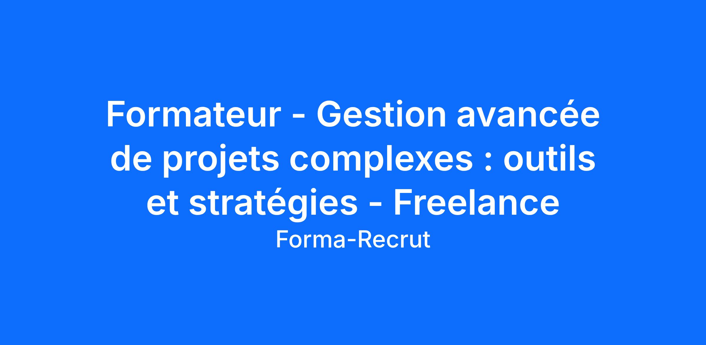 Formateur - Gestion avancée de projets complexes : outils et stratégies - Freelance
