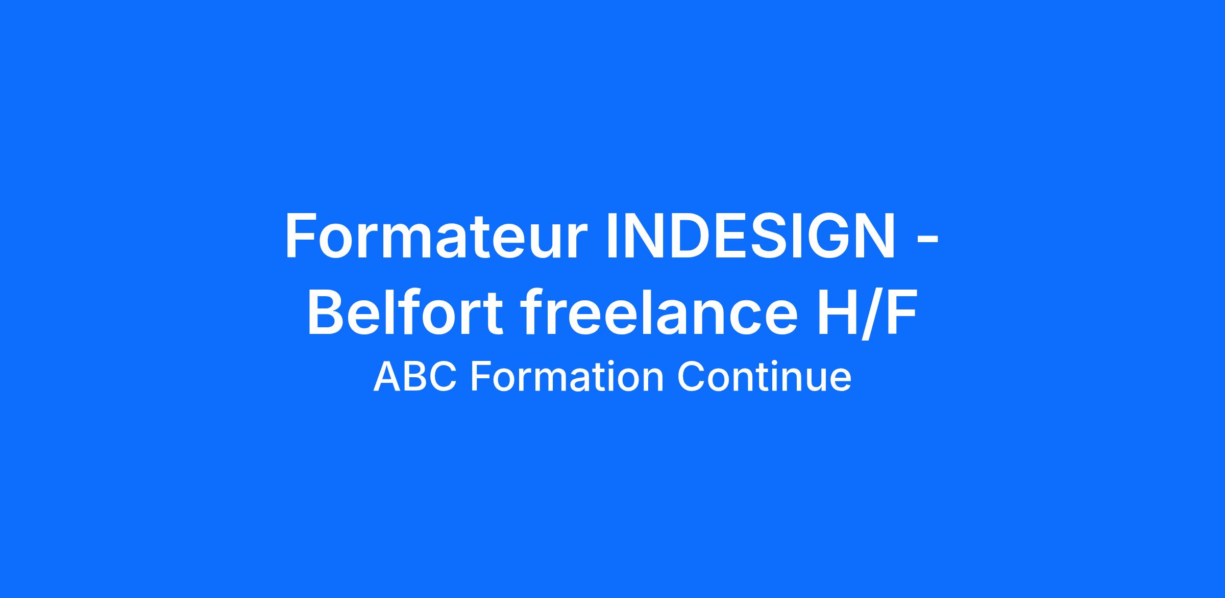 Dans le cadre du développement de notre agence de Belfort, nous recherchons un formateur freelance/indépendant en INDESIGN (H/F) pédagogues et disposant de ses supports de formation pour animer des formations individuelles en présentiel dans le cadre de missions ponctuelles.