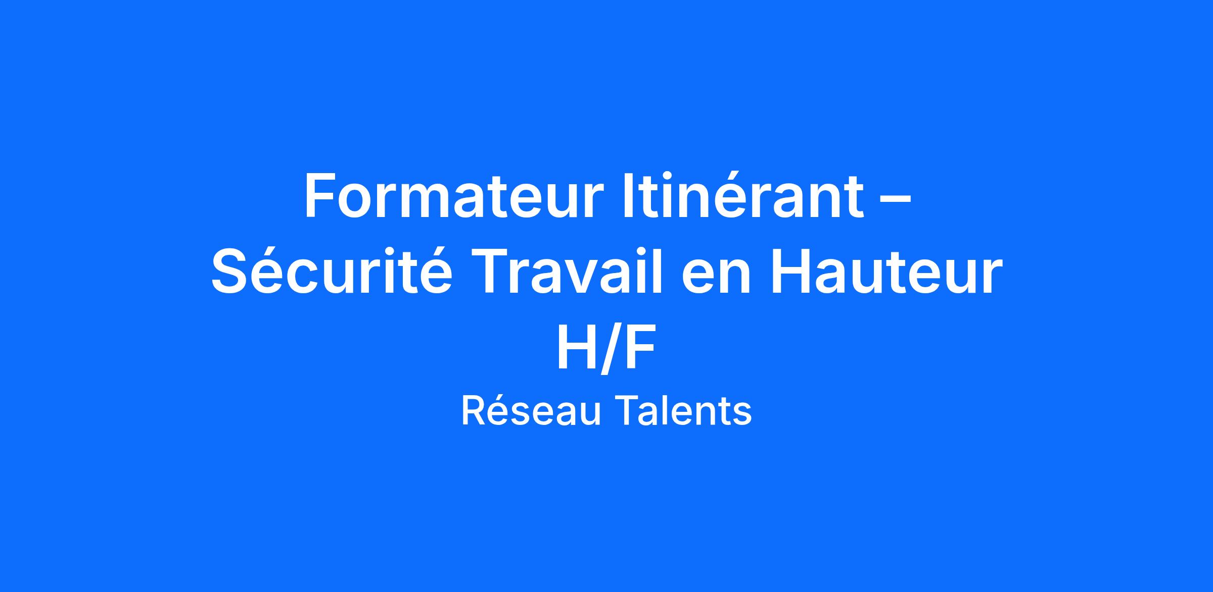 Dans le cadre d’un remplacement, nous recherchons un Formateur Itinérant pour intervenir dans le domaine de la sécurité liée au travail en hauteur.