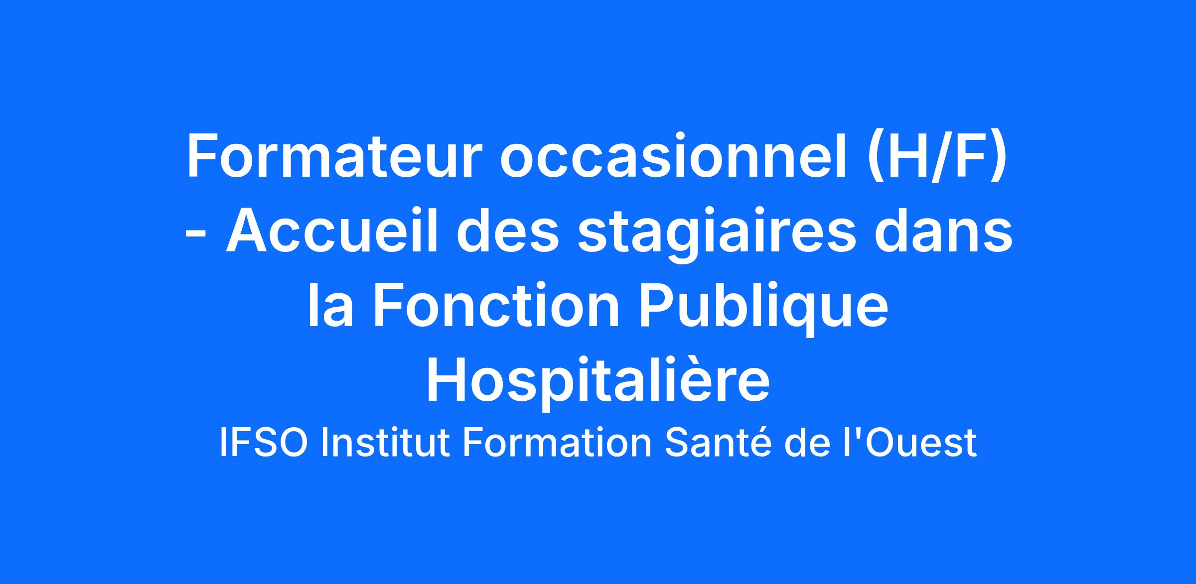 L’IFSO (Institut de Formation en Santé de l'Ouest) recherche des formateurs occasionnels pour intervenir sur la thématique de l’accueil et l’accompagnement des stagiaires dans la Fonction Publique Hospitalière