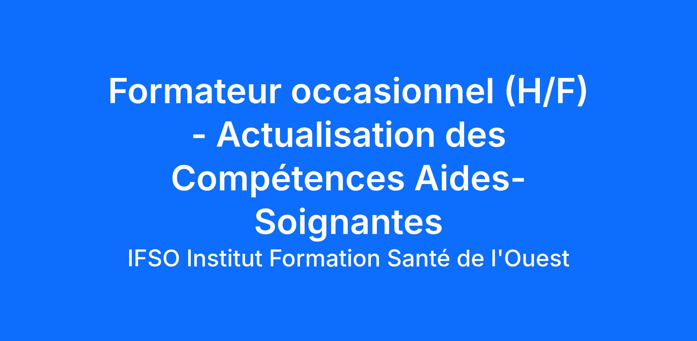 L’IFSO (Institut de Formation en Santé de l'Ouest) recherche des formateurs occasionnels en Ile de France, Bourgone, Franche Conté et Grand-Est pour intervenir en tant qu’experts dans le cadre de nos formations continues.