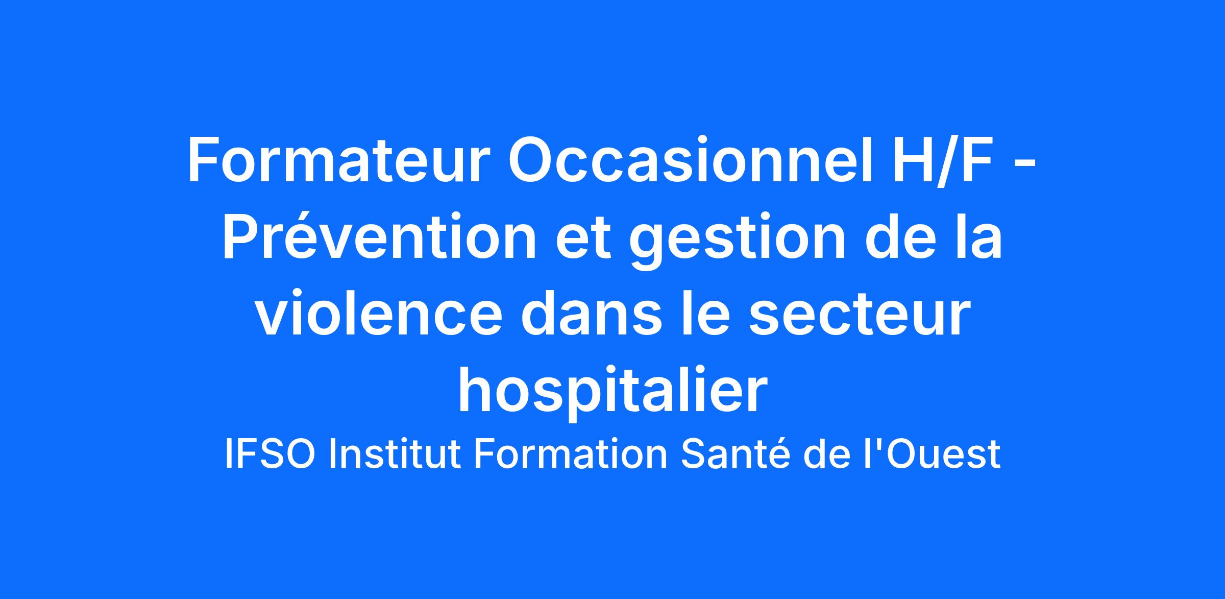 L’IFSO (Institut de Formation en Santé de l'Ouest) recherche des formateurs occasionnels pour intervenir sur la thématique "Prévention et gestion de la violence en milieu hospitalier".