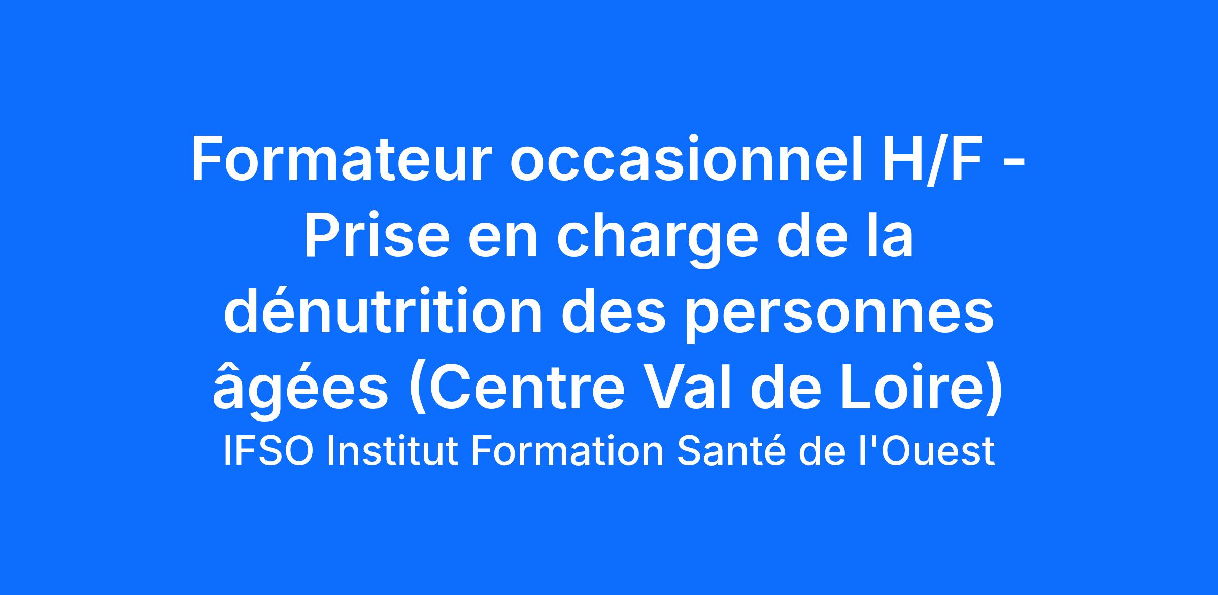 L’IFSO (Institut de Formation en Santé de l'Ouest) recherche des formateurs occasionnels pour intervenir sur la thématique de la dénutrition des personnes âgées, en région Centre Val de Loire.