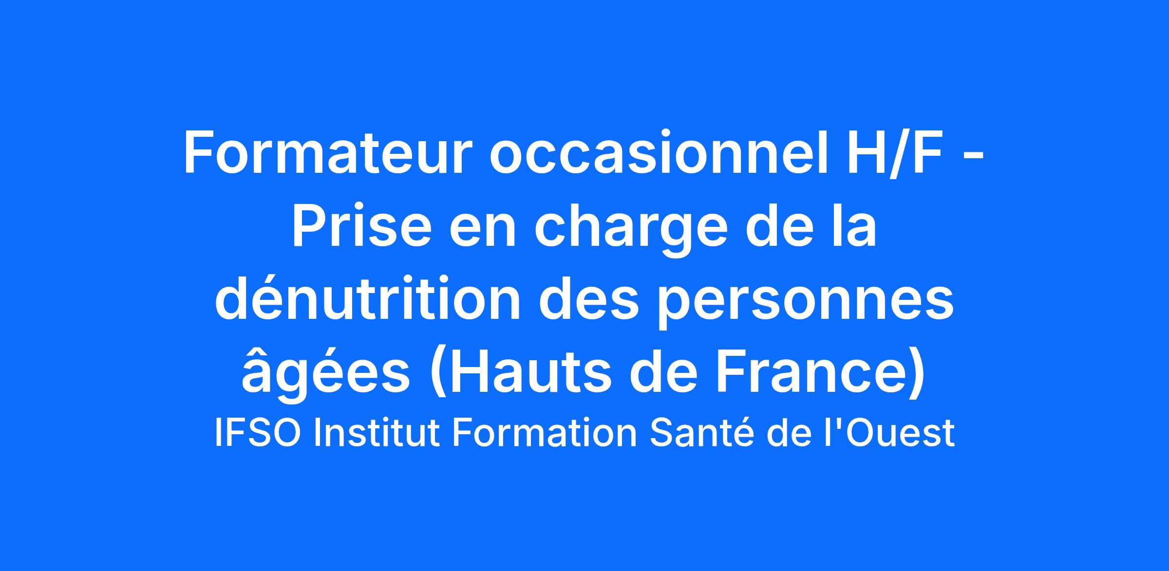 L’IFSO (Institut de Formation en Santé de l'Ouest) recherche des formateurs occasionnels pour intervenir sur la thématique de la dénutrition des personnes âgées, en région Auvergne Rhône Alpes.