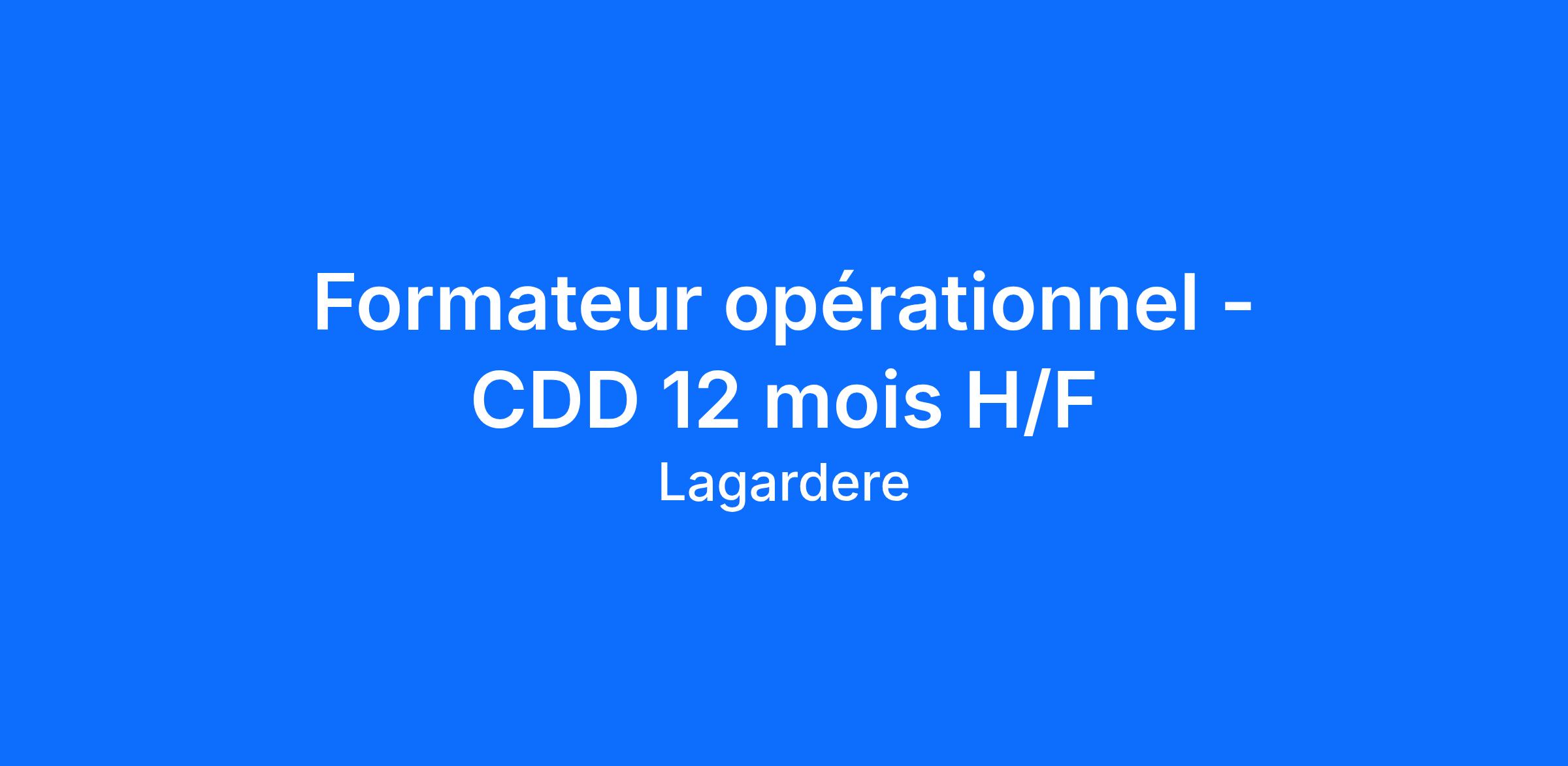Formateur opérationnel - CDD 12 mois H/F