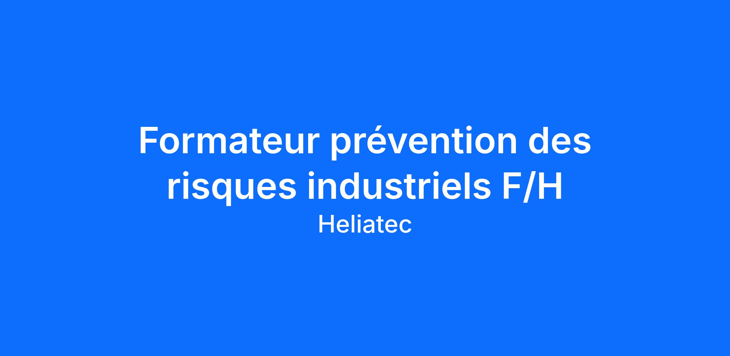Au sein de notre groupe, HELIATEC TRAINING SERVICES, spécialiste de la formation dans le domaine de la prévention des risques en milieu industriel recherche un Formateur F/H spécialisé en prévention des Risques professionnels, pour un CDI.