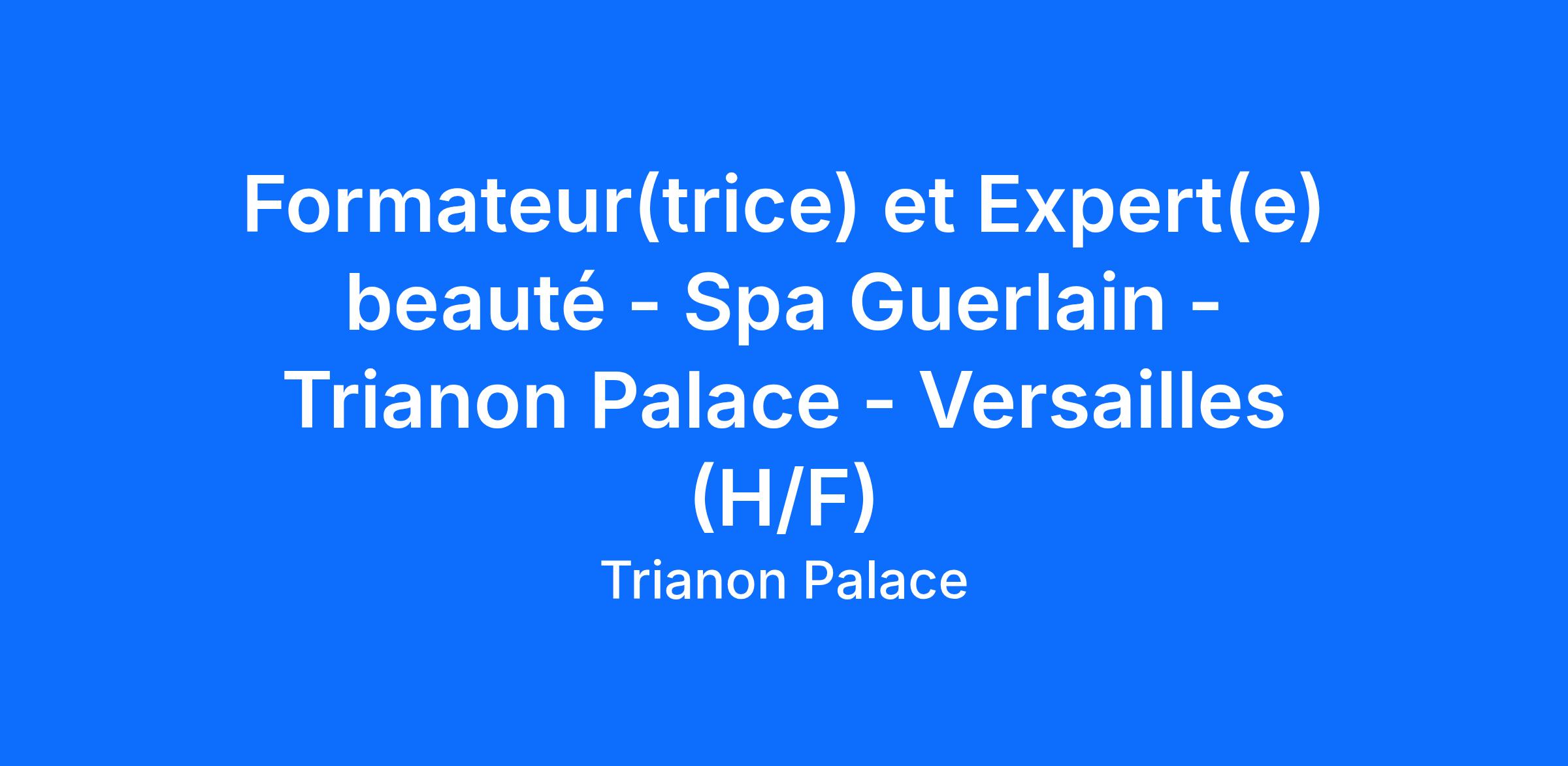Vous aurez pour mission de vous assurer de la parfaite maîtrise des protocoles Guerlain, méthodes, produits, rituels et histoire de la Maison Guerlain et également de pratiquer différents types de soins auprès de la clientèle du SPA de l’hôtel, dans le respect des standards et procédures applicables au sein du Waldorf Astoria Versailles - Trianon Palace ainsi que des standards et protocoles de soins GUERLAIN.