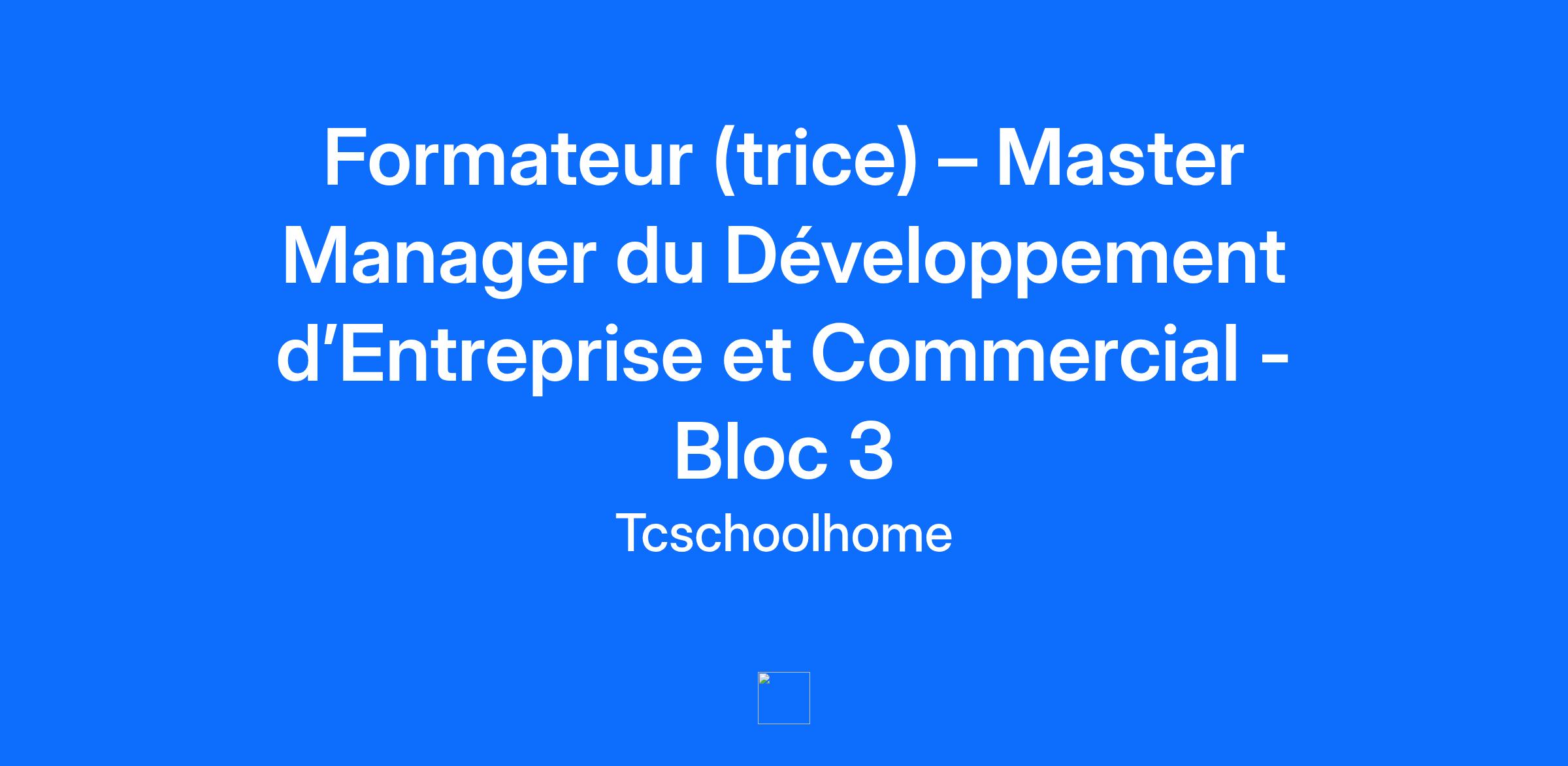 Nous recherchons un(e) formateur (trice) pour assurer la formation et l’accompagnement des apprenants dans l’acquisition des compétences du Bloc 3, portant sur la conception, la structuration et la mise en œuvre de stratégies de développement commercial à l’échelle nationale et internationale.