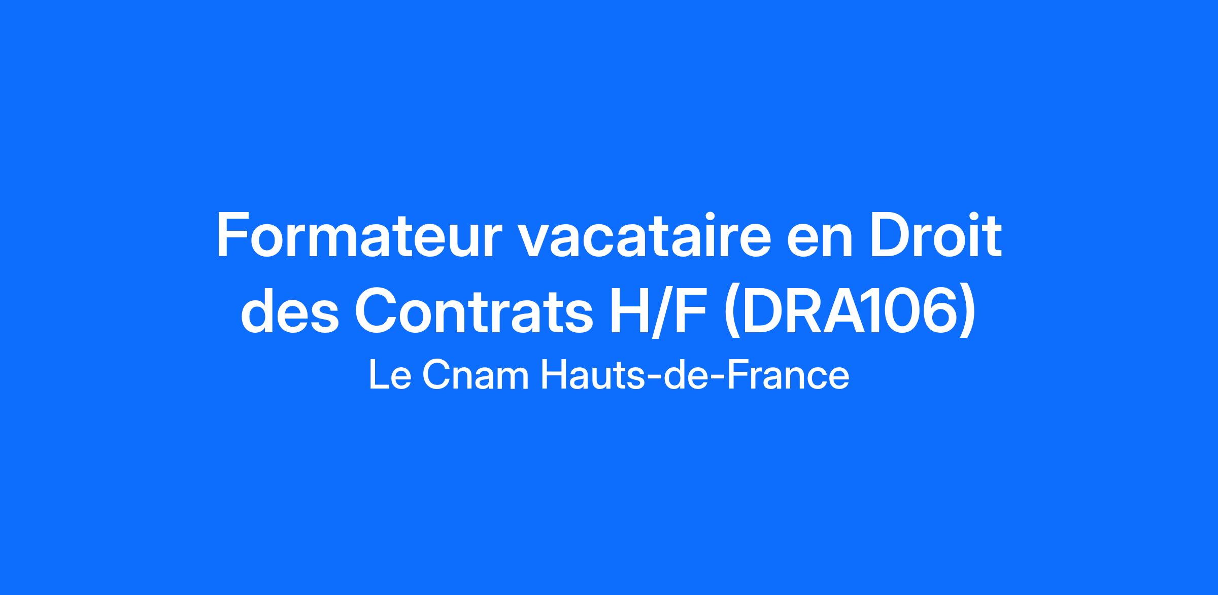 Dans le cadre de son partenariat avec le lycée Cassini de Clermont, le Cnam Hauts-de-France recherche un formateur vacataire (H/F) en droit des contrats pour intervenir auprès des étudiants.