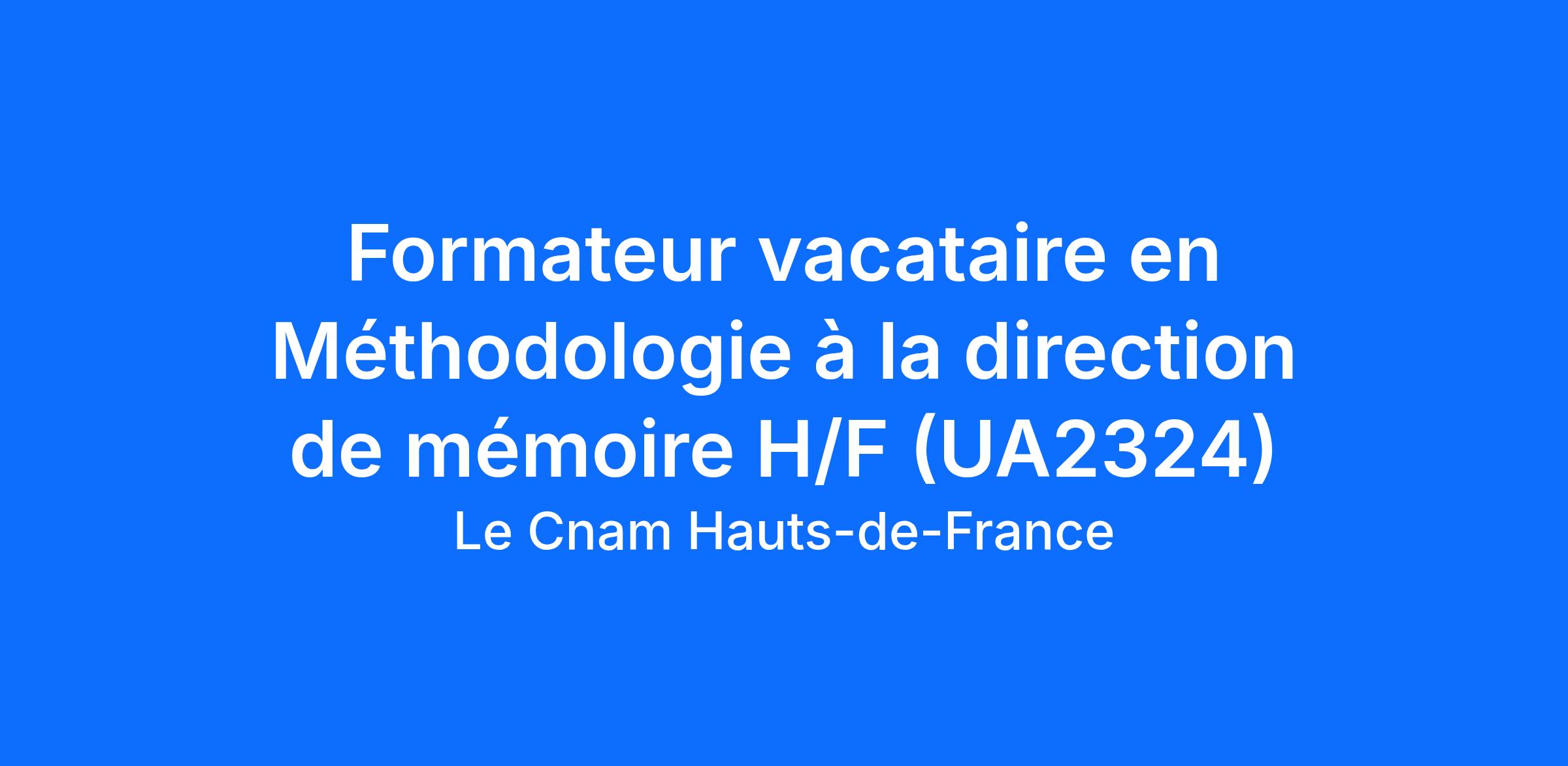 Nous recherchons un Formateur (H/F) en Méthodologie à la direction de mémoire (UA2324) à Lille.