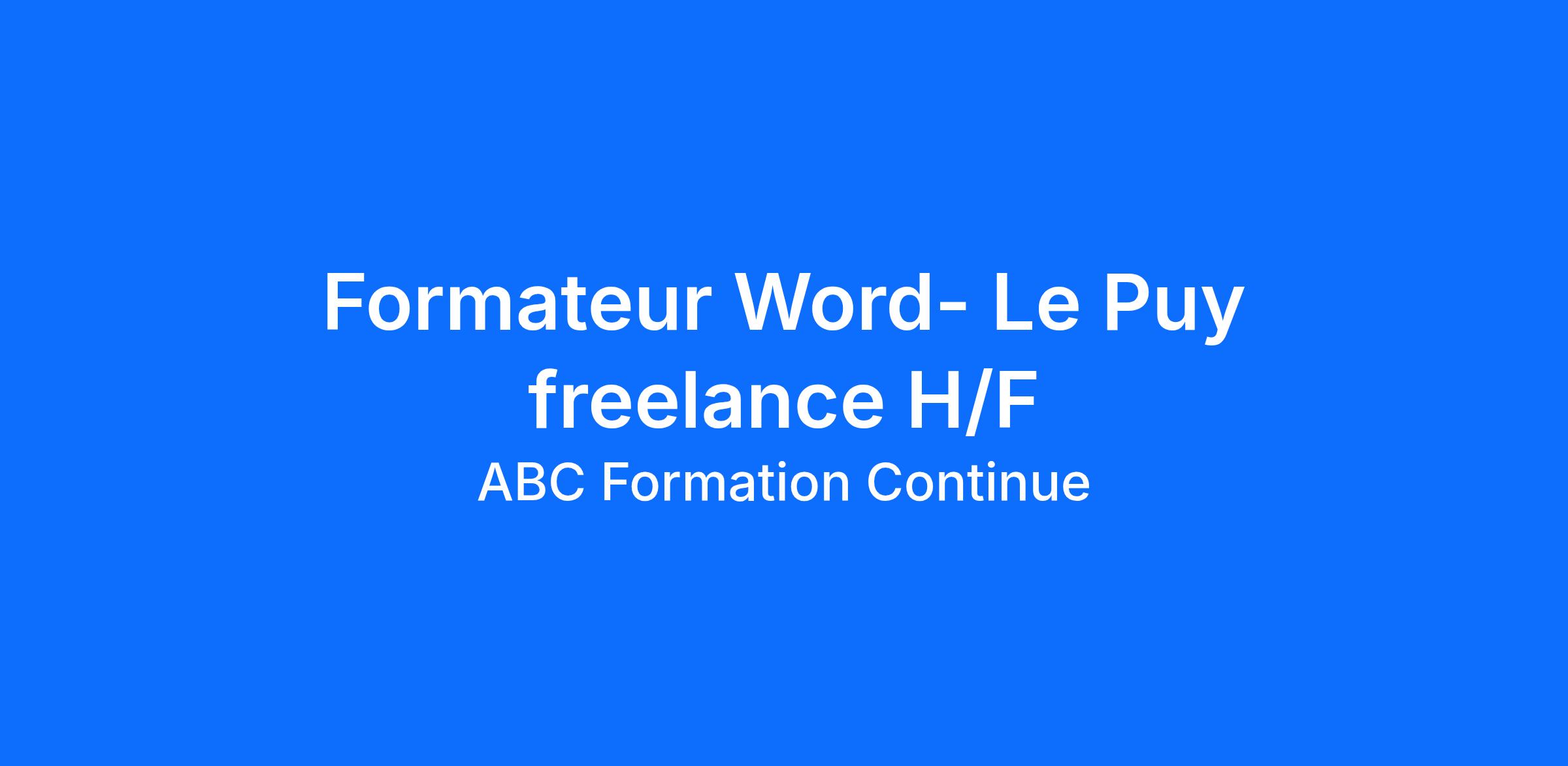 Dans le cadre du développement de notre agence du Puy , nous recherchons un formateur freelance/indépendant en Word (H/F) pédagogue et disposant de ses supports de formation pour animer des formations individuelles en présentiel dans le cadre de missions ponctuelles.