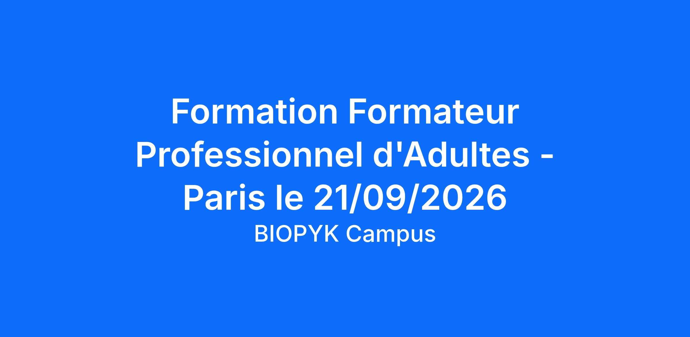 Formation Formateur Professionnel d'Adultes - Paris le 21/09/2026