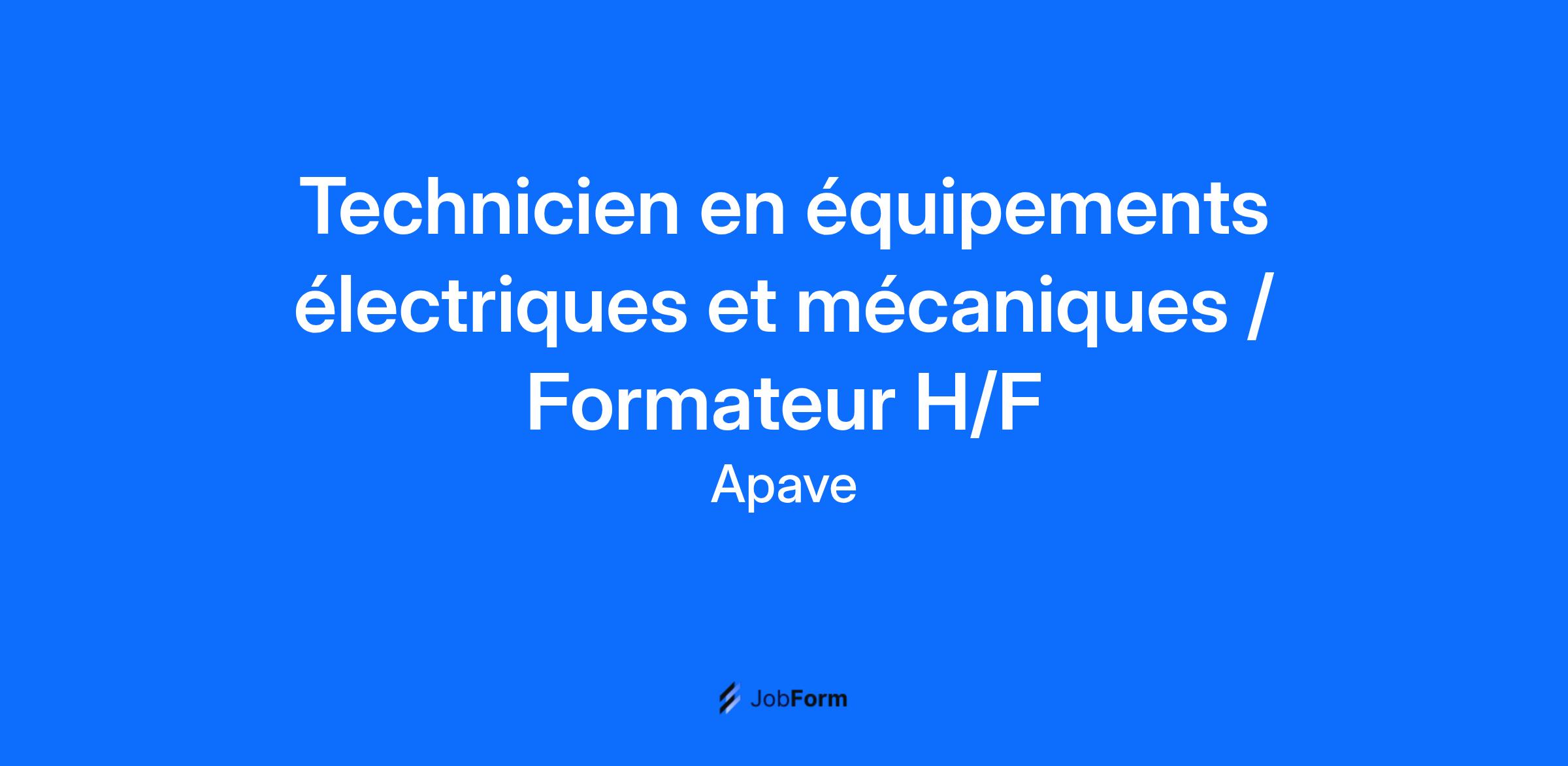 Technicien en équipements électriques et mécaniques / Formateur H/F